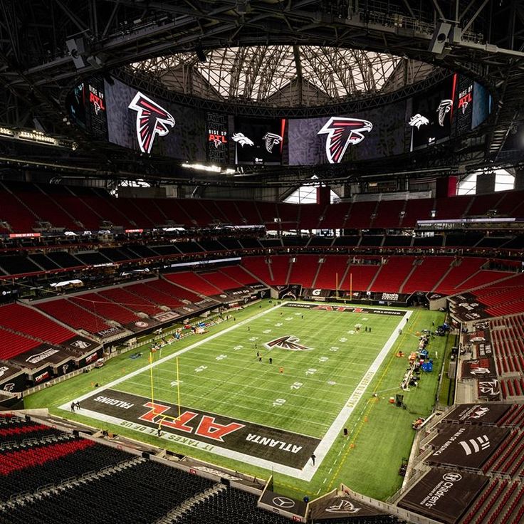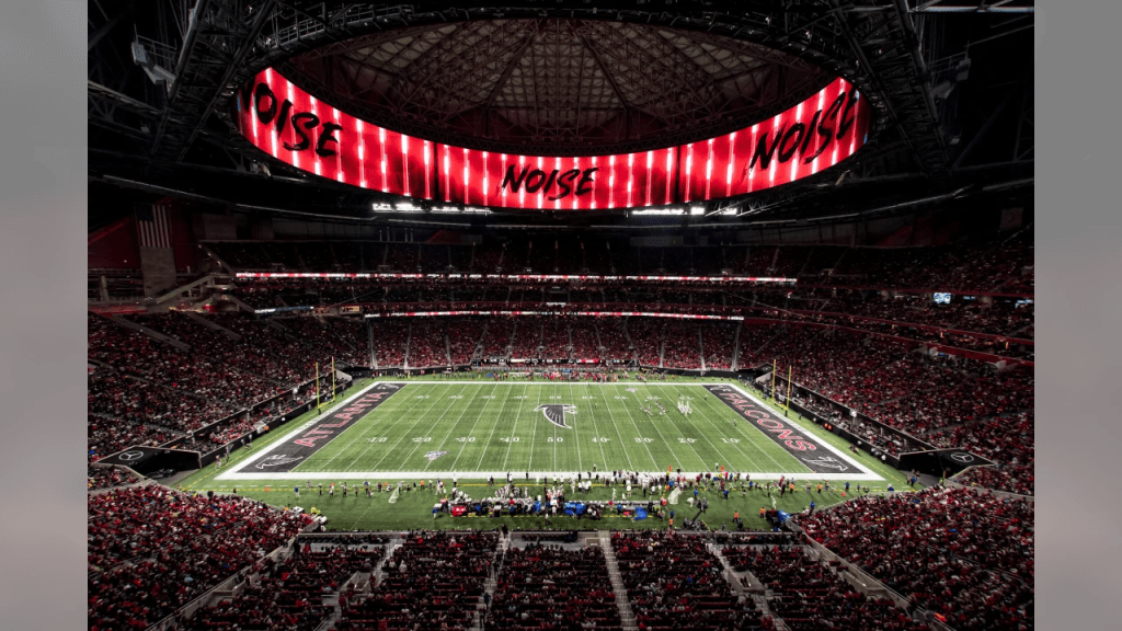 The Falcons organization also does a great job at transforming the field into a throwback look by changing the logos on the field. The current field looks like this: