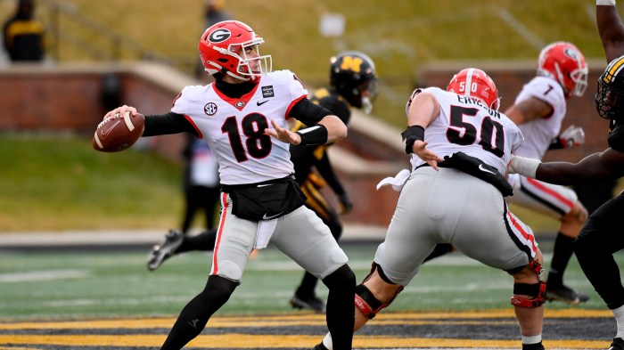 With three weeks until the University of Georgia Bulldogs kickoff at Arkansas on September 26, graduate transfer quarterback Jaime Newman opts out of the 2020 season due to Covid-19 concerns. Newman transferred to UGA from Wake Forest. Fleet footed Newman was touted as being the starting quarterback for the Bulldogs with University of Southern California … Continue reading UGA QB Opts out of Season