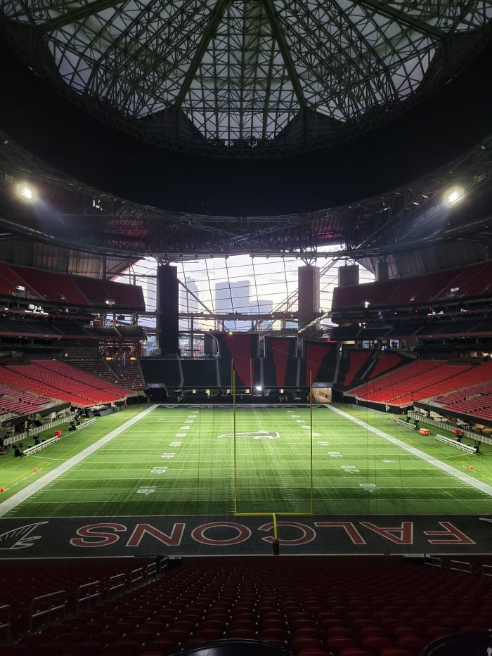 The endzones that is!!! This is something that I have been pushing since last November when the Falcons hosted the Saints on Thanksgiving night. The Falcons wore their throwback uniforms and repainted the field old school including the endzones. I tweeted out that it would be great to see the endzones painted black on a … Continue reading Mercedes Benz Stadium Gets a Paint Job